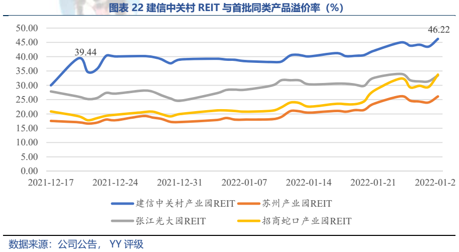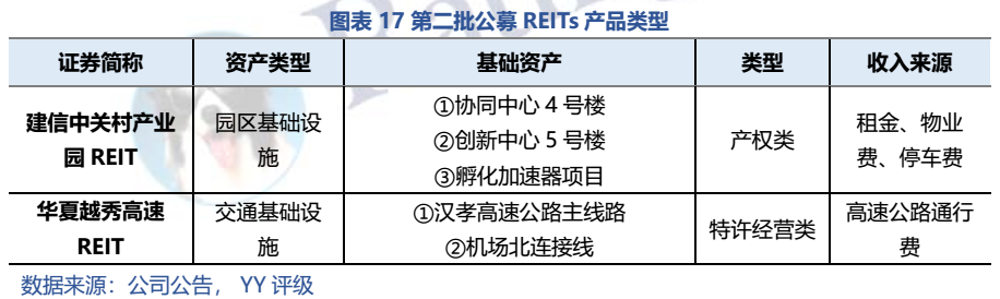 第二批公募REIT只有兩只:華夏越秀高速REIT和建信中關村REIT,整體看底層資產優秀,建信中關村REIT的現金流分派率處于園區類前列。第二批公募REITs認購“火爆”,網下和網上的配售率均不足3%;上市前幾日溢價率最高達38%、40%,之后企穩,但收益率仍高于REITs同類的其他產品。整體看,受益于底層資產的優質、現金分派率較高(建信中關村REIT)以及投資者情緒的高漲,第二批REITs表現亮眼。