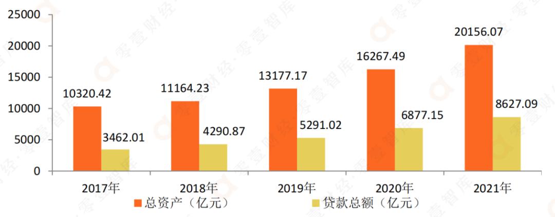 圖 1:2017-2021年寧波銀行總資產與貸款總額