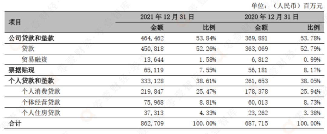 表 1:寧波銀行2021年個人貸款金額與占比情況