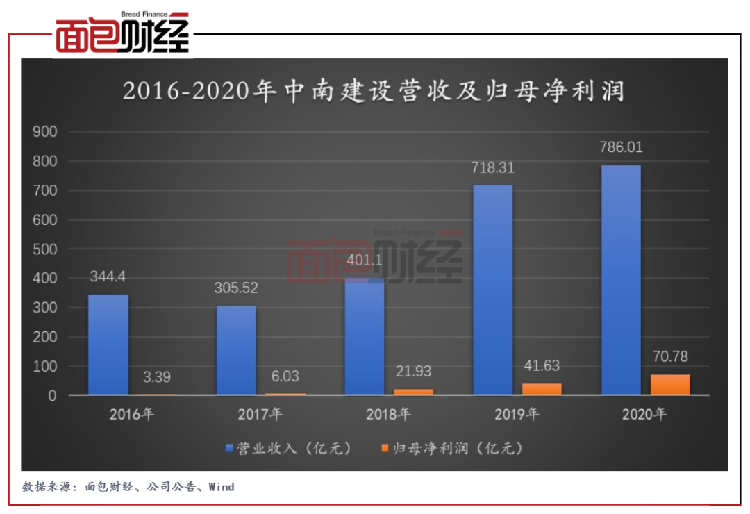 圖1:2016-2020年中南建設營收及歸母凈利潤