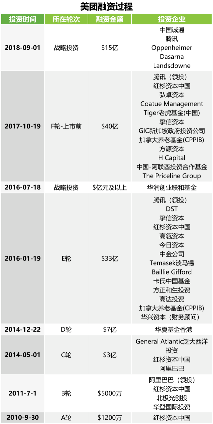 (美團(tuán)上市之前的融資整理,來(lái)自艾瑞網(wǎng))