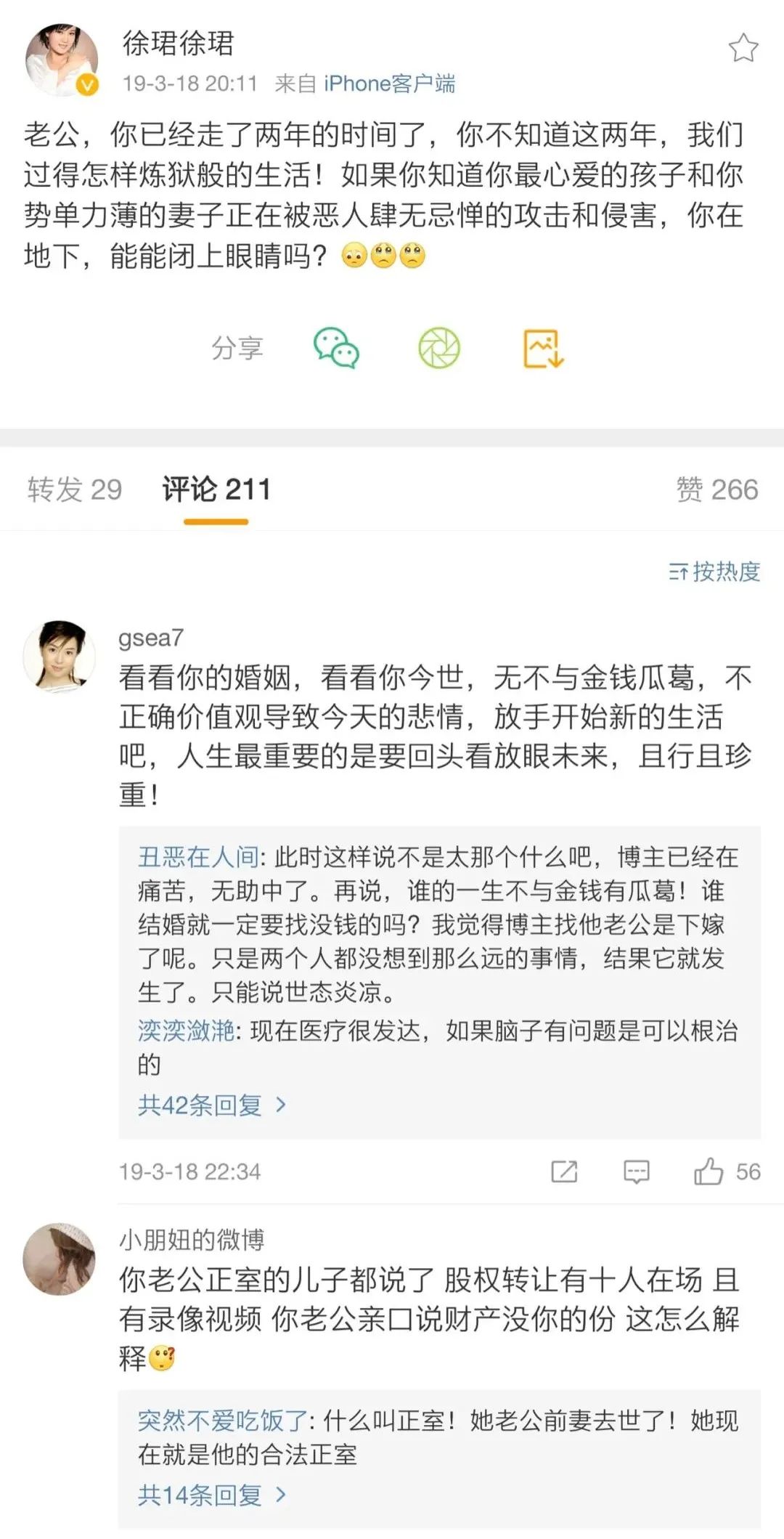 二審期間徐珺發微博懟繼子:自你父親去世后,你從未來看過弟弟妹妹一眼,更沒給過一分錢……搶起弟弟妹妹的財產來毫不心軟!