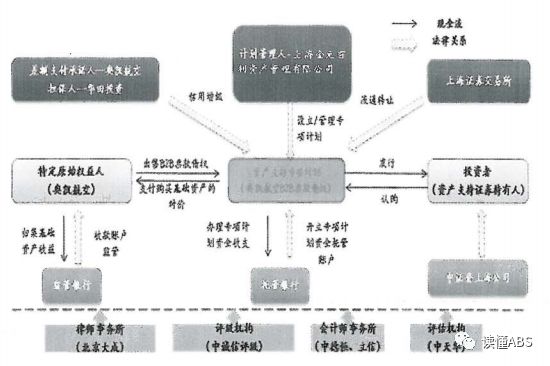 奧凱航空B2B本票債權資產支持專項計劃于2016年7月成功發行,金額19.5億元,期限3年。其中優先A1規模4億元、AA評級;優先A2規模7億元、AA評級;優先A3規模8億元、AA評級;次級0.5億元;交易結構如下: