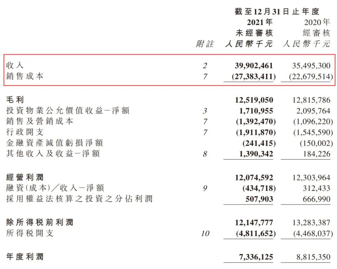 不過值得注意的是,相比營收增速,寶龍地產的銷售成本增速略快,同比增幅20.7%。寶龍的解釋是由于年內已出售及交付物業(yè)總數(shù)增加而導致成本總額同期增加。