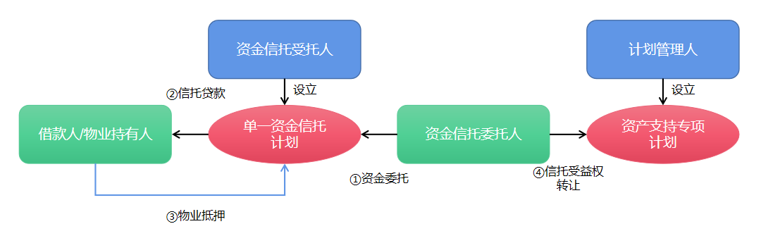 承租人→物業持有人收款賬戶→監管賬戶→資金信托賬戶→財產權信托賬戶→上清所