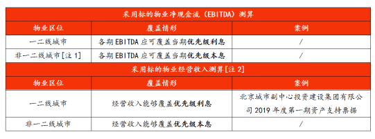注1:一、二線和非一、二線物業均入池,且以一、二線物業為主的,按照一二線城市要求測算優先級利息覆蓋倍數