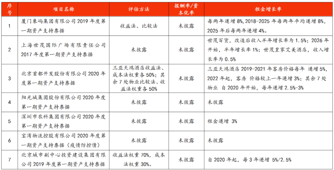 其次,報酬率/資本化率和租金增長率的設置。無論采取直接資本化法還是報酬資本化法,報酬率/資本化率和租金增長率是物業估值的直接影響因子,而上述項目都沒有披露報酬率/資本化率和租金增長率。