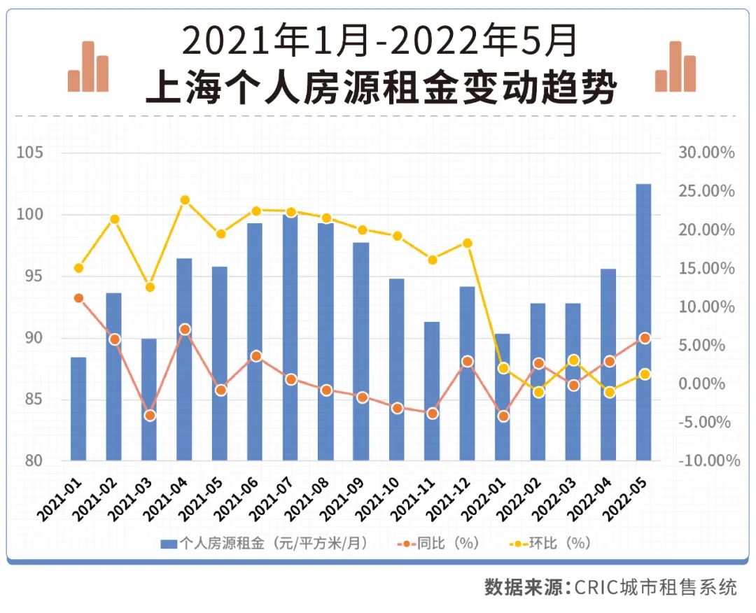 上海個人房源租金在疫情期間的4月和5月出現了“兩連漲”。