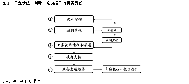 那么,究竟該如何對第三類“原城投”進行信用分析呢?本文建議,首先應按照“五步法”(見圖1)對其身份進行判斷