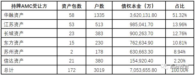 從需求端來看,華融資產在一級市場持牌AMC受讓中占據半壁江山。地方AMC江蘇資產,追趕其他持牌AMC,成為市場的主要參與者。