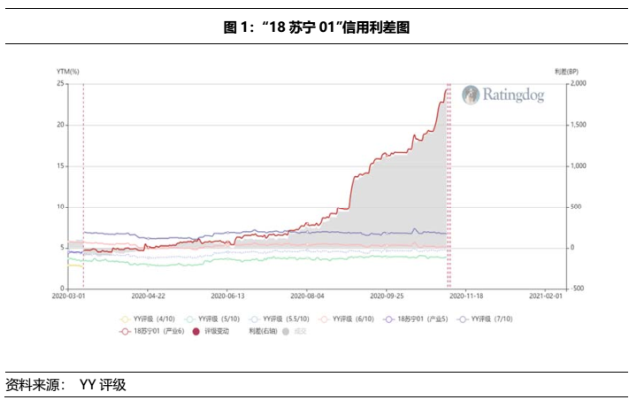 2020年8月初,蘇寧易購相關債券遭遇砸盤,利差逐漸走闊,信仰明顯處于波動狀態,市場的擔憂和價格的相互印證,進入負循環階段。