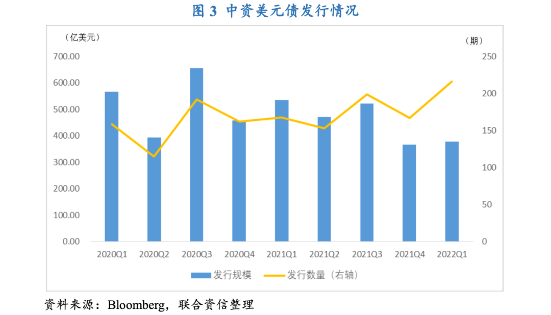 美聯儲加息疊加地緣政治風險升級,帶動美元幣值大幅走高,中國一季度外貿強勁對人民幣匯率形成有利支撐,為中資美元債發行提供相對穩定的匯率環境