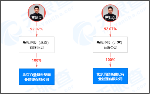 據(jù)天眼查顯示,北京財(cái)富時(shí)代置業(yè)有限公司注冊資本10.1億人民幣,由樂視控股(北京)有限公司100%控股,法定代表人為吳孟;北京百鼎新世紀(jì)商業(yè)管理有限公司注冊資本3000萬人民幣,由樂視控股(北京)有限公司100%控股,法定代表人為吳孟。賈躍亭持有樂視控股(北京)有限公司92.07%的股權(quán),賈躍亭為兩家公司的最終受益人。