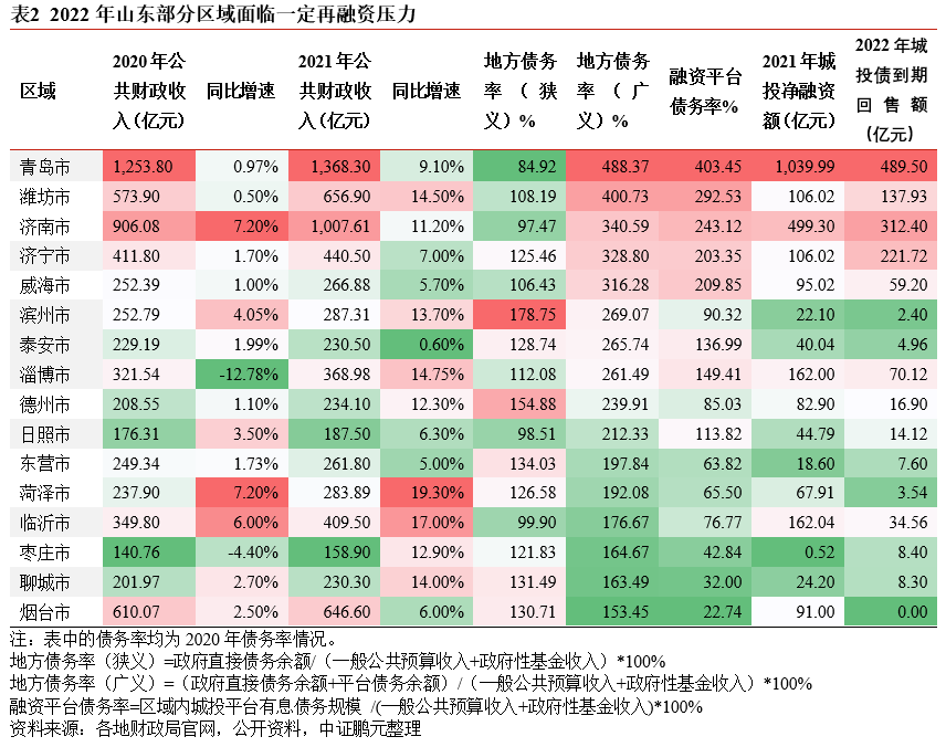 原標題: 2022年山東省城投債到期回售壓力研究