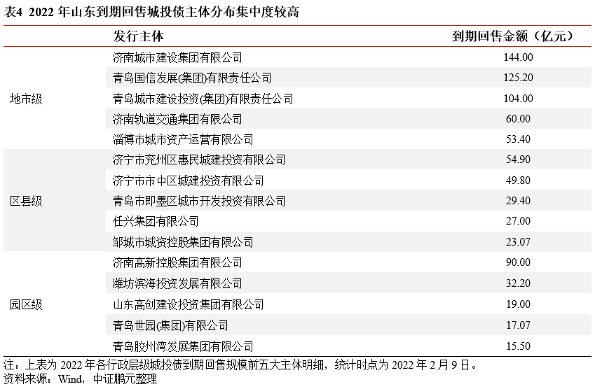 2022年山東省城投債到期回售壓力研究