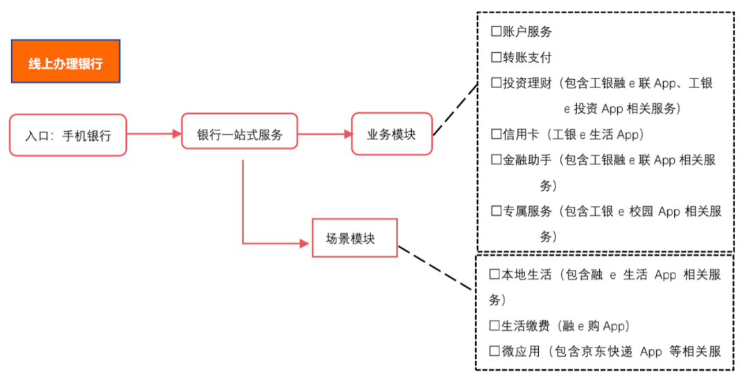 四、銀行App矩陣生態典型范例:工行“手機銀行+業務平臺+場景平臺”