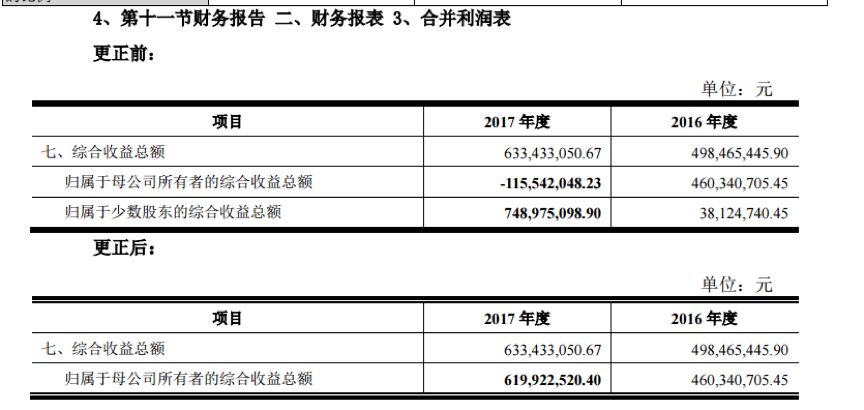 但是,跨境通的年報數(shù)據(jù)質(zhì)量并不太讓人放心。公司在2018年4月28日發(fā)布了2017年年度報告,但隨后又對年報的部分內(nèi)容進行了修正,并在2018年5月5日發(fā)布了更新后的2017年年度報告。