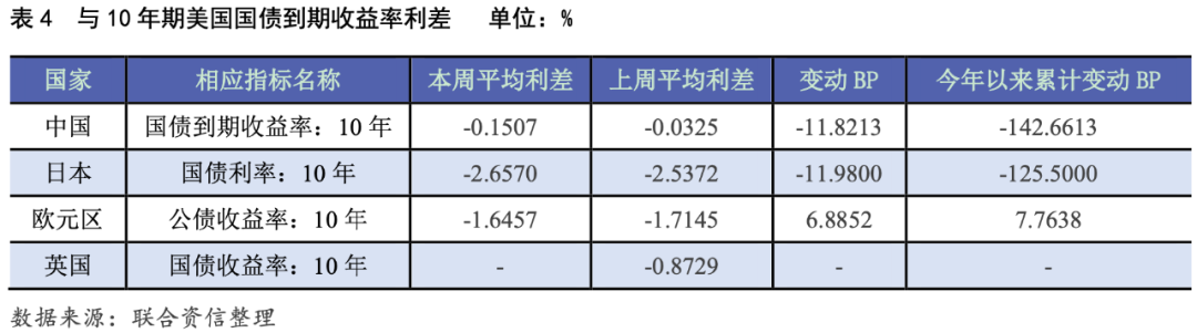 各期美債收益率全線上漲,主要經(jīng)濟(jì)體國(guó)債與美債收益率利差走勢(shì)不一