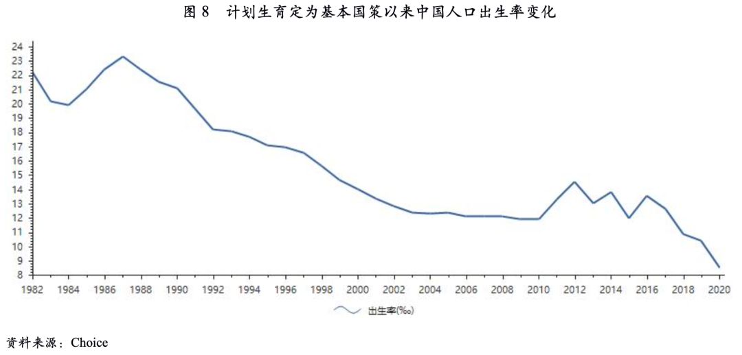 人口是房地產未來市場空間的重要決定因素。20世紀80年代計劃生育被定為基本國策以來,中國人口出生率顯著下降,放開二胎對出生率的提振效果較為有限,2020年出生率降至8.52‰的歷史低點。處于下行通道中的出生率逆轉的難度較大,人口增長乏力是制約中國房地產中長期發展的重要原因。