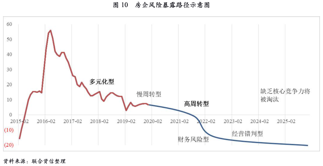 根據上文分析,人口周期的斷檔、購買力的下降可能導致房地產在中長周期內仍將面臨較長時間的下行階段。當長期內,若房地產市場容量發生大幅萎縮,需求支撐不足、銷售競爭激烈、房企回款壓力大將導致房地產行業整體利潤率進一步下滑,盈利能力較弱、缺乏核心競爭力的房企在中長期內將逐步暴露風險或進行轉型。在上述環境下,即使企業財務較穩健且經營不存在重大預判,但若該企業自身在項目品質、運營管理能力、成本控制能力、優質土儲等方面不存在核心競爭優勢,在房地產行業集中度提升的必然趨勢下,也將面臨淘汰風險。