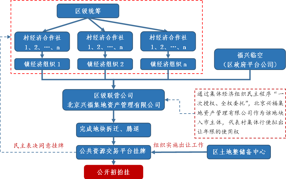 在上述模式中,大興區(qū)采取集中統(tǒng)籌方式,成立區(qū)級有限公司獨立完成地塊拆遷、騰退等一級整理工作,最終待地塊收儲后到二級市場獨立摘地。