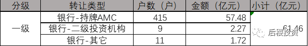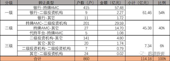 根據行業慣例把銀行(信托)出包定為一級市場,AMC收包、出包,代持平臺出包定為二級市場,其它民營投資機構為三級市場,并且把3戶以上的受讓、出讓方定為二級投資機構。