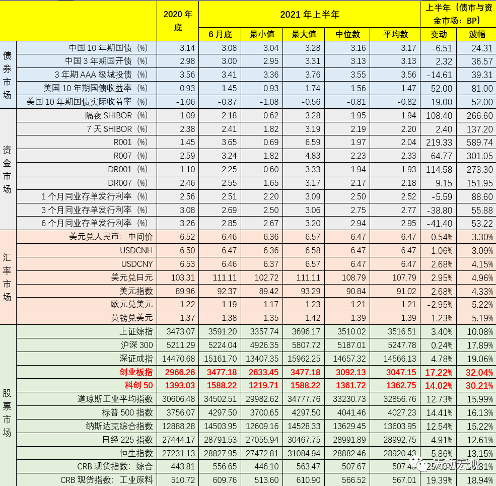 (3)2021年下半年經濟基本面仍有一定程度支持,且政策層面依然會相對友好,美聯儲所代表的政策收緊并不會在今年兌現,同時國內貨幣政策仍會以觀望為主,目前看暫沒有調整的必要,但預期變化也會導致下半年波動幅度不會小。