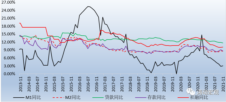 2、今年11月當(dāng)月,M1同比增速達(dá)到3%,環(huán)比上升0.20個(gè)百分點(diǎn),這是自今年2月以來M1同比增速首次出現(xiàn)環(huán)比上升,這表明企業(yè)的資金面實(shí)際上是相對充裕的。