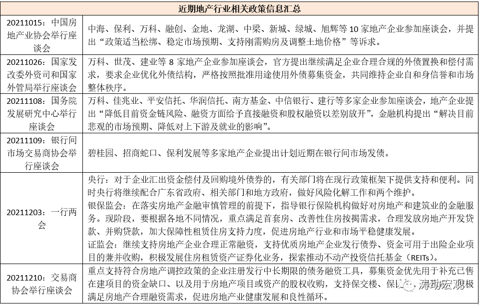 2、今年10-11月,政策層面在個(gè)人住房按揭、企業(yè)發(fā)債以及地產(chǎn)企業(yè)的開發(fā)貸、并購貸等方面的約束有所放開。