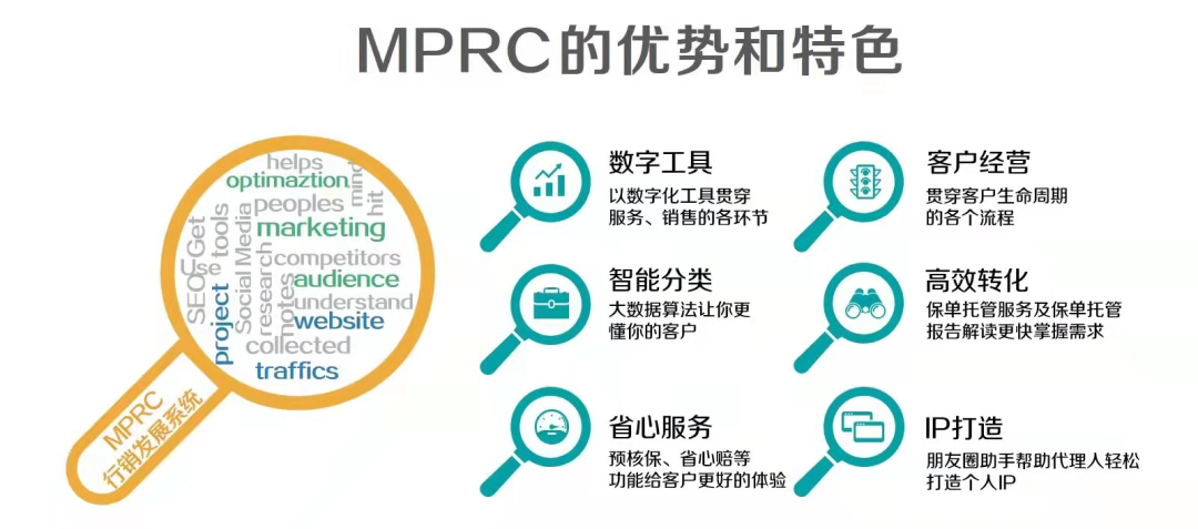 這里再來劃一個重點:通過使用MPRC行銷發展系統,保險代理人的展業效率和展業能力獲得顯著提升。數據統計,保險代理人可觸達訪客增長了28.2%;人均保單漲幅16%、人均保費漲幅16%;代理人出單率從25.7%漲到了27.6%。