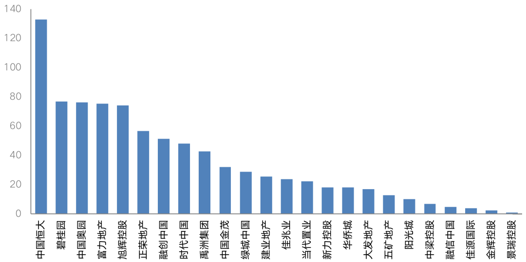 圖:截至2021年6月16日重點房企債券贖回規模(包括永續債)(億元)