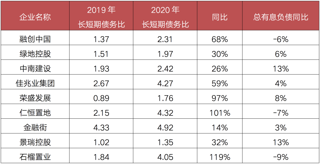 總體來看,過半企業2020年債務結構優化,部分企業表現突出,預計未來企業的長短期債務比也將得到進一步優化。