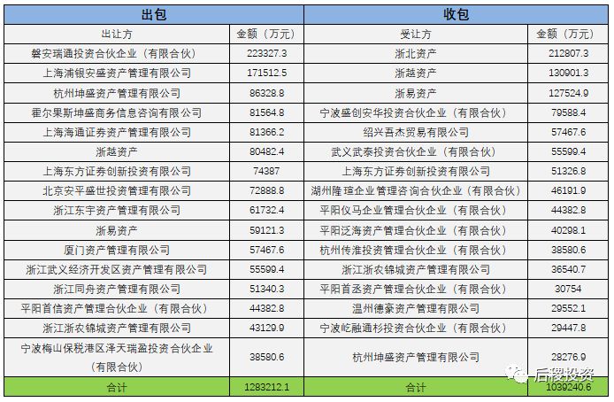 1、三級市場投資機(jī)構(gòu)收包出包排行榜