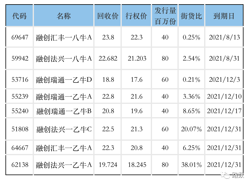 其他牛證或多或少還有點(diǎn)剩余價值。融創(chuàng)海通一牛八A(61766.HK)是最慘的,每股剩余價值為0。