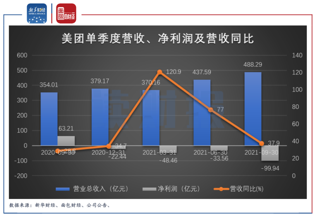 除了增速放緩,美團面臨的更為嚴重問題是凈利潤虧損巨大。數據顯示,公司第三季度虧損99.94億元,創單季度虧損新高。