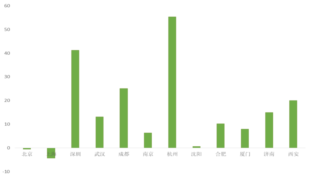 從各城市人口流入情況來看,對學歷型人才租賃補貼力度更大的城市,人口流入數(shù)量也更多。深圳、杭州、成都、武漢的補貼標準相對城市租金而言,能夠解決租房壓力,同時,這些城市的人口流入情況也更加樂觀;而從另一個角度來看,人口凈流入大的城市對人才提供租房補貼對于緩解城市居住壓力更有必要性和實際意義。