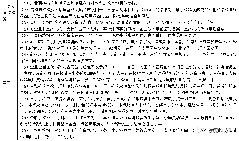 (2)2016年4月29日,央行發布《關于在全國范圍內實施全口徑跨境融資宏觀審慎管理的通知》,決定將全口徑跨境融資宏觀審慎管理政策推廣至全國范圍,并建立宏觀審慎規則下基于微觀主體資本或凈資產的跨境融資約束機制,企業和金融機構均可按規定自主開展本外幣跨境融資。同時,企業和金融機構開展跨境融資按風險加權計算余額(已提用未償余額),風險加權余額不得超過上限,即:跨境融資風險加權余額≤跨境融資風險加權余額上限。