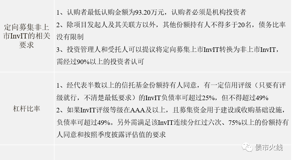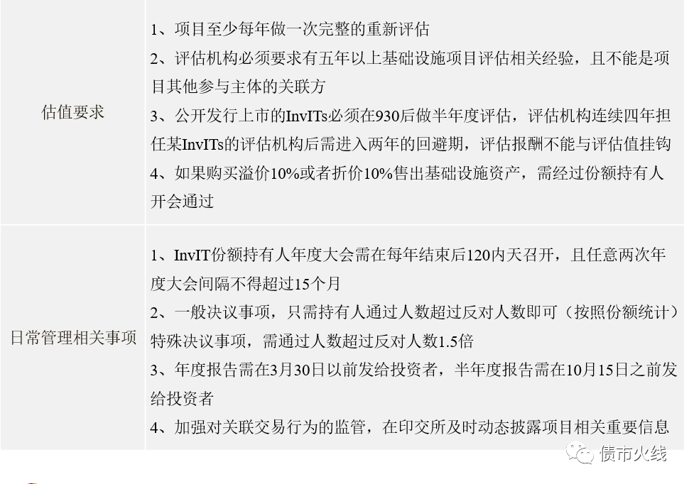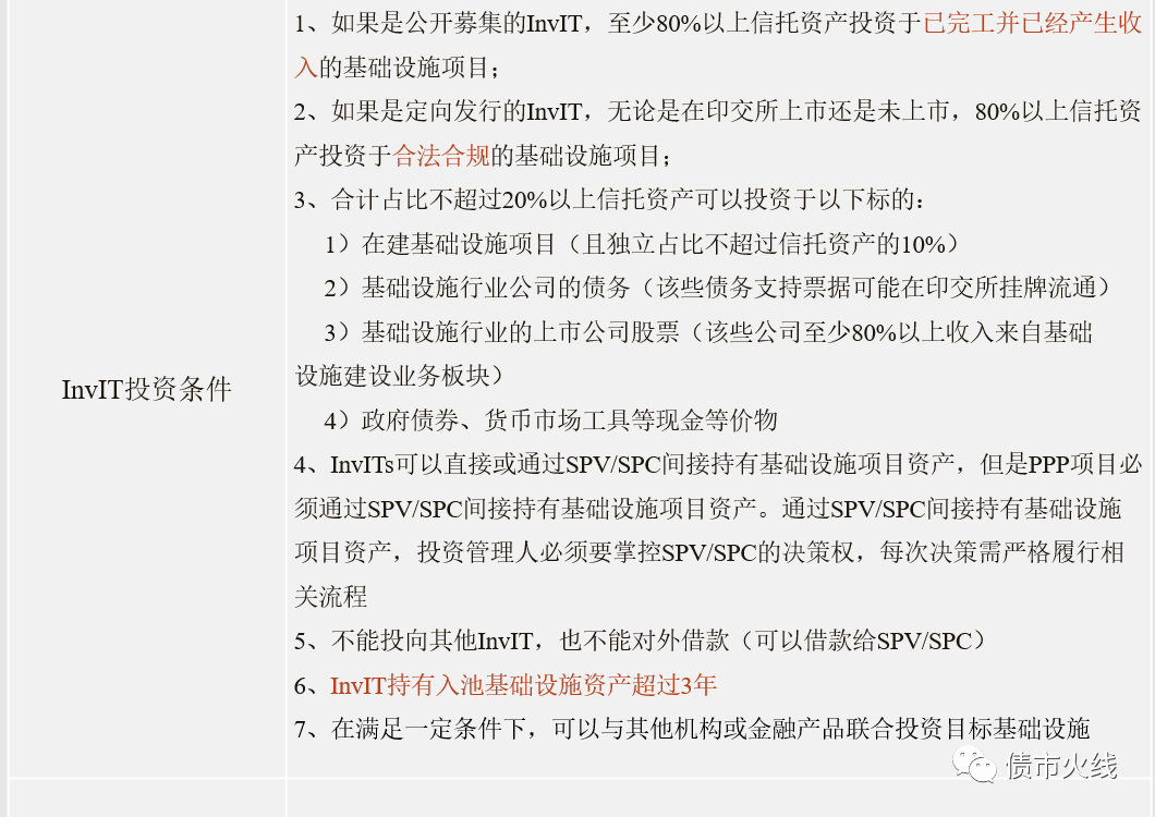 印度證券交易管理委員會(SEBI)于2007年發布REITs監管文件草案,通過與政府部門、地產開發商和投資者的合作磋商并借鑒國外成熟市場的經驗,最終在2014年頒布了目前施行的REITs監管文件,2019年4月India’s maiden REITs的上市讓印度REITs最終破繭而出。在REITs監管文件和產品上市的同時,印度的invITs也是在同步發展,目前已有“Indian Grid Trust”和“IRB INvIT Fund”兩只產品在NSX上市。其實印度REITs和invITs載體均為信托,在產品結構和監管條款上有許多相似之處,以下就是對印度invITs的監管規則進行簡要的概述: