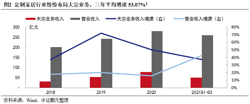 本次房企風險暴露過程中,大宗業務盈利低、回款慢的弊端逐漸顯現。中證鵬元認為,大宗業務是定制家居行業渠道變革方向的一次嘗試,未來或將回歸謹慎發展,展望未來,定制家居行業在渠道和品類變革方面的探索仍將繼續。