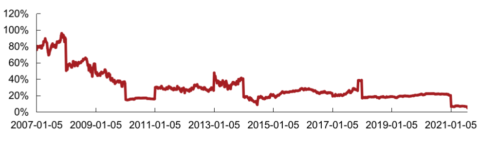 備注:1)恒生中國(guó)內(nèi)地地產(chǎn)指數(shù)的推出主要是為了反映前10只市值最大、流通性最高,在香港上市但主要營(yíng)業(yè)收入來自中國(guó)內(nèi)地的房地產(chǎn)股票表現(xiàn)。當(dāng)前成分股共10只,分別為:中國(guó)金茂、中國(guó)海外發(fā)展、世茂集團(tuán)、龍湖集團(tuán)、華潤(rùn)置地、龍光集團(tuán)、碧桂園、中國(guó)恒大、碧桂園服務(wù)、融創(chuàng)中國(guó)