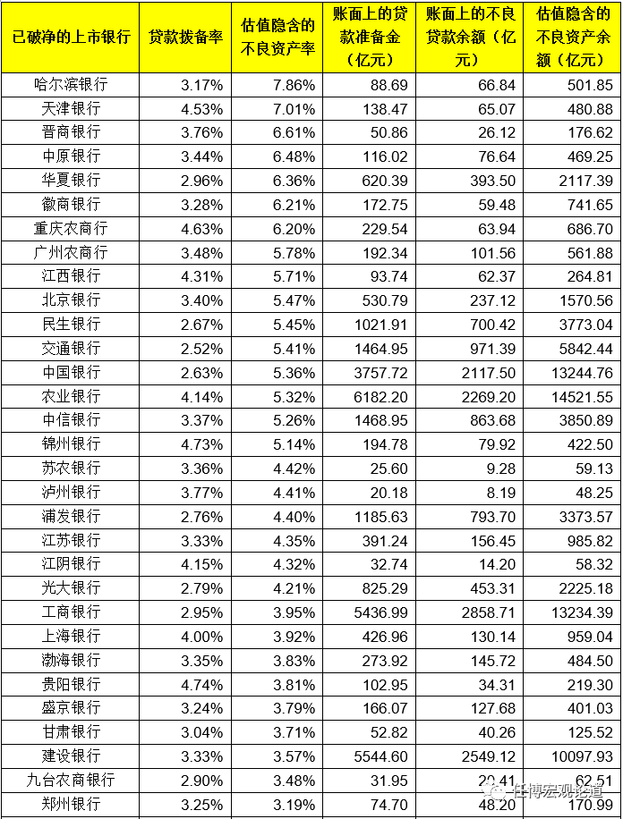 不良資產=已計提的貸款損失準備+凈資產*(1-市凈率)