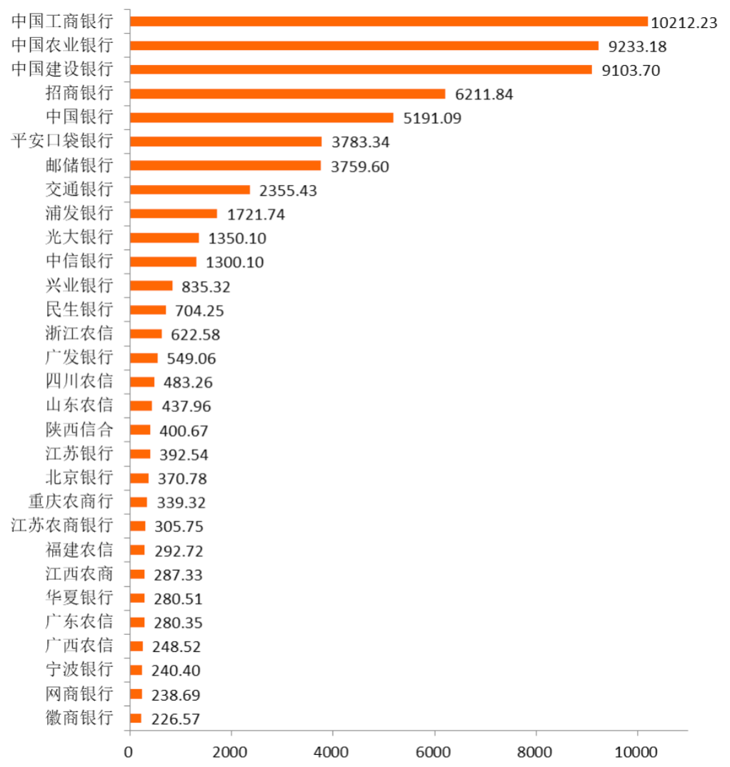 從月活躍用戶數(shù)來看,根據(jù)第三方權(quán)威數(shù)據(jù)分析機構(gòu)——易觀Analysys發(fā)布的數(shù)據(jù),截至2021年10月,MAU排名前30名主要以國有大行、全國性股份制銀行為主,其中前3甲均為國有大行,分別為工商銀行1.02億、農(nóng)業(yè)銀行0.92億、建設(shè)銀行0.91億。同時,拼搶“零售之王”的招商銀行與平安銀行,MAU分別排在第4位與第6位,超越了部分股份制銀行。