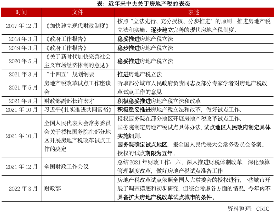 縱觀近幾年中央關于房地產稅的表態,從2017年“逐步建立制度”、2018年“穩妥推進”,到2019年“穩步推進”,暗含房地產稅立法工作已有步驟可遵循之意。2020年,受新冠肺炎疫情影響,相關表述又回歸更為謹慎的“穩妥推進”。2021年,“十四五”規劃綱要、房地產稅改座談會、最高領導人署名文章都昭示著房地產稅改準備工作正在加速推進,直至10月23日,全國人大常委會正式授權國務院在部分地區開展房地產稅試點。