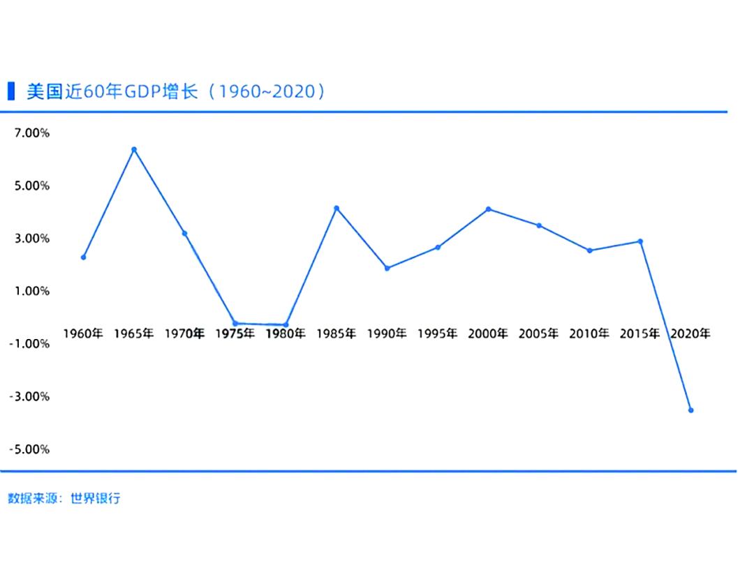 其實道理很簡單,目前全球仍然是最強的國家,但是它的經(jīng)濟增速在不斷的下滑。