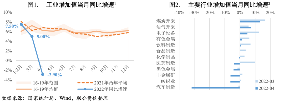 汽車制造業(yè)生產(chǎn)受到疫情較大沖擊。行業(yè)方面,得益于能源、原材料保供穩(wěn)價(jià)政策持續(xù)推進(jìn),煤炭開采、油氣開采等采礦業(yè)增加值增長相對穩(wěn)定;制造業(yè)增加值回落明顯,受疫情影響較大,其中電子設(shè)備制造業(yè)增加值仍實(shí)現(xiàn)了同比增長;飲料、食品制造業(yè)增加值同比小幅增長,生活必需品供應(yīng)保持充足穩(wěn)定;而汽車制造業(yè)增加值同比大幅下降超過30%,受上海、長春地區(qū)汽車供應(yīng)鏈以及整車廠商停工停產(chǎn)影響較大。