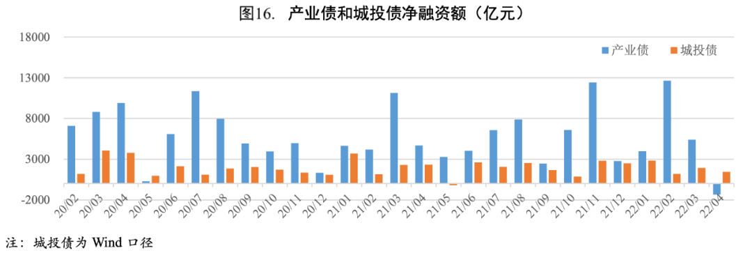 非金融企業(yè)債券凈融資規(guī)模總體平穩(wěn),結(jié)構(gòu)分化延續(xù)。4月企業(yè)部門信用債凈融資3479億元,較上月和上年同期分別少94億元、145億元,顯示企業(yè)債券凈融資規(guī)模總體平穩(wěn),但結(jié)構(gòu)分化延續(xù)。從大類結(jié)構(gòu)看,產(chǎn)業(yè)債凈融資額-1341.4億元,信用規(guī)模大幅收縮;城投債凈融資額1437.5億元,信用擴(kuò)張繼續(xù)放緩;從企業(yè)性質(zhì)看,國企債市場信用擴(kuò)張持續(xù)放緩,民企債市場信用收縮延續(xù);從區(qū)域結(jié)構(gòu)看,區(qū)域信用延續(xù)分化態(tài)勢,上海、重慶、福建、浙江等省市信用收縮較為明顯。