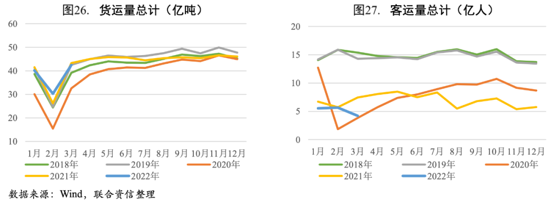 3月初本輪疫情爆發(fā)以來,全國多地防疫管控措施升級(jí),物流受阻、人員流動(dòng)減少,交通運(yùn)輸需求受到較大影響。其中,疫情對貨運(yùn)的影響更偏向短期,貨運(yùn)恢復(fù)相對較快,與疫情前水平接近;而客運(yùn)量的恢復(fù)可能是個(gè)更為緩慢的過程,2020年疫情以來公路、鐵路、航空以及水路的客運(yùn)量總計(jì)一直在低位運(yùn)行,與疫情前水平差距較大。總體來看,局部疫情制約國內(nèi)交通運(yùn)輸需求的恢復(fù),需關(guān)注債務(wù)負(fù)擔(dān)重、短期債務(wù)比重高且外部支持力度較小的交運(yùn)企業(yè),特別是客運(yùn)為主的企業(yè)。