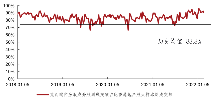 備注:香港地產(chǎn)股大樣本篩選邏輯:主業(yè)為地產(chǎn),業(yè)務(wù)主要來自大陸或者大陸是重要的發(fā)展區(qū)域,剔除純投資型公司,不含物業(yè)管理及其他地產(chǎn)服務(wù)公司,樣本數(shù)量共計122家