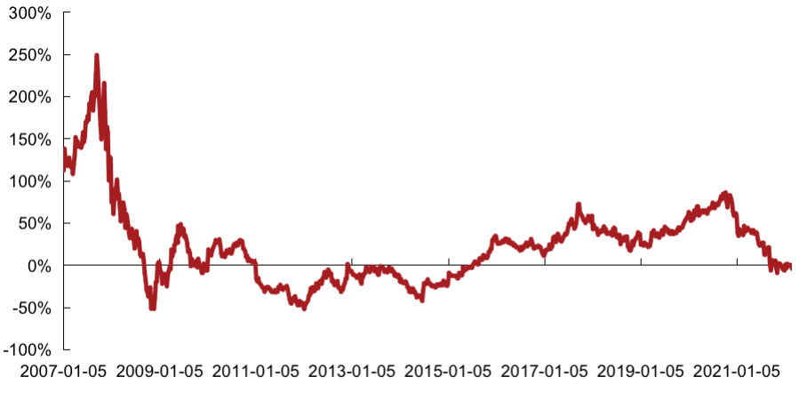 備注:相對PE=(克而瑞內(nèi)房股領(lǐng)先指數(shù)成分股整體PE/恒生指數(shù)成分股整體PE-1)*100%