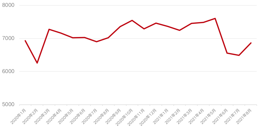 2018年,岳陽(yáng)樓市開(kāi)始轉(zhuǎn)冷,市場(chǎng)開(kāi)啟下行趨勢(shì),四季度時(shí)房?jī)r(jià)由2017年最高9000元/平米降至7000元/平方米左右,價(jià)格逐漸回歸穩(wěn)定,至今年8月房?jī)r(jià)跌破7000元/平方米。從銷售數(shù)據(jù)來(lái)看,2020年以來(lái),月度成交套數(shù)基本維持在1500套左右,今年六七月,受大幅降價(jià)影響,成交高位運(yùn)行,分別成交2228套和2286套,成交價(jià)格跌至7000元/平方米以下。